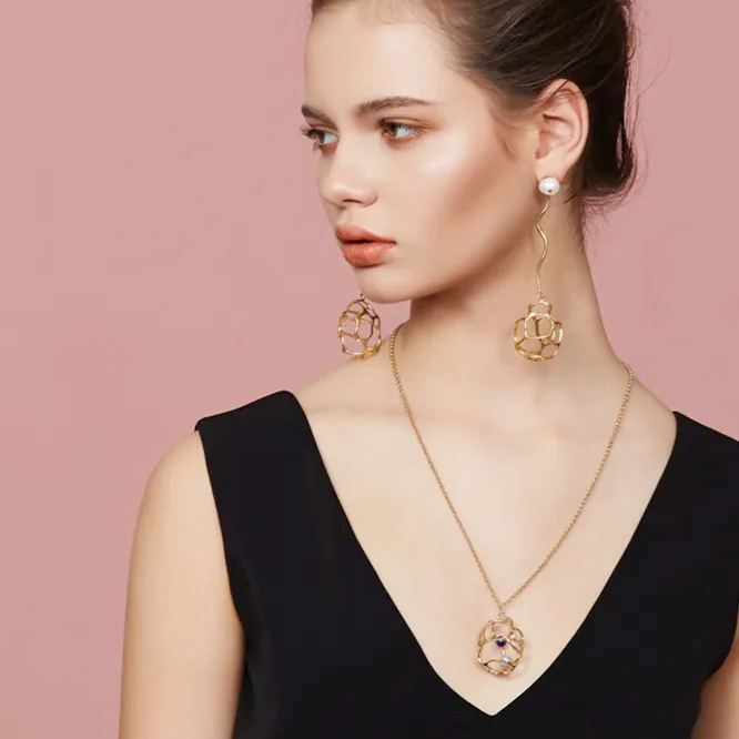 Texture Collection Cubic Fruit Necklace With Pearl Lapis Lazuli