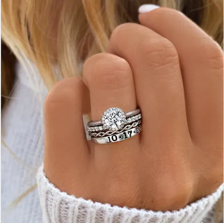 The Halo Twine Ring is one of our best selling Ring stack combinations. We took our best selling twine ring stack and we added our extremely popular Halo Stone Ring to the stack. This combined ring stack make a very unique set of rings. Customers are using this stack as an Engagement Ring Set, Promise Ring Set or an Anniversary Ring Stack. There are 4 rings in total. The stack is available in Sterling Silver, 10 & 14 Karat gold set with Cubic Zirconia Crystals.