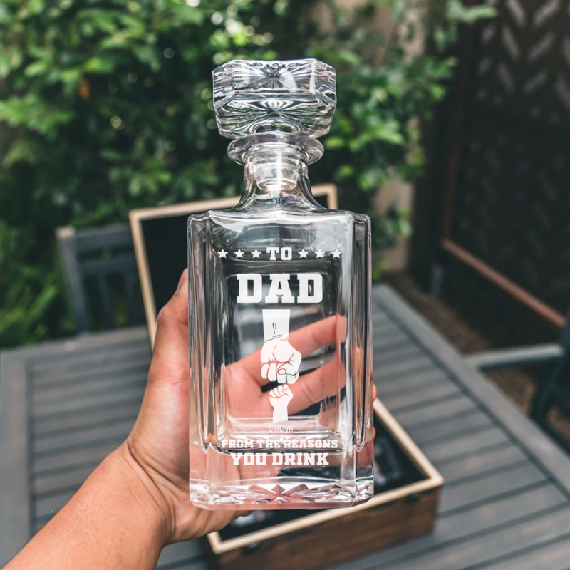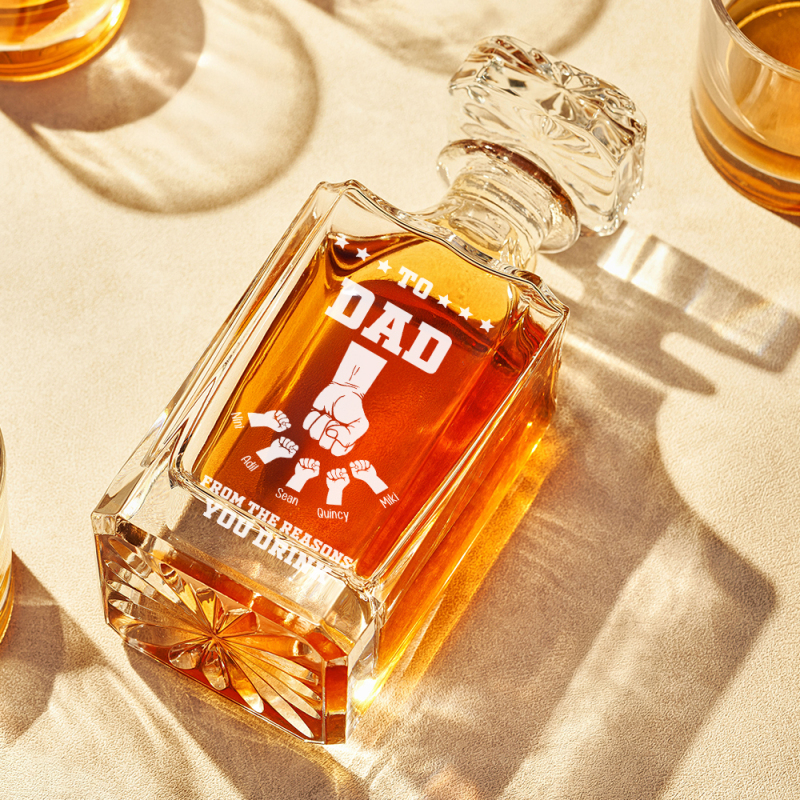 Give Dad a gift as bold and unforgettable as his sense of humor with this personalized whiskey bottle. Featuring the playful phrase To Dad, from the reasons you drink' and personalized with the kids' names, this keepsake bottle is both thoughtful and fun.