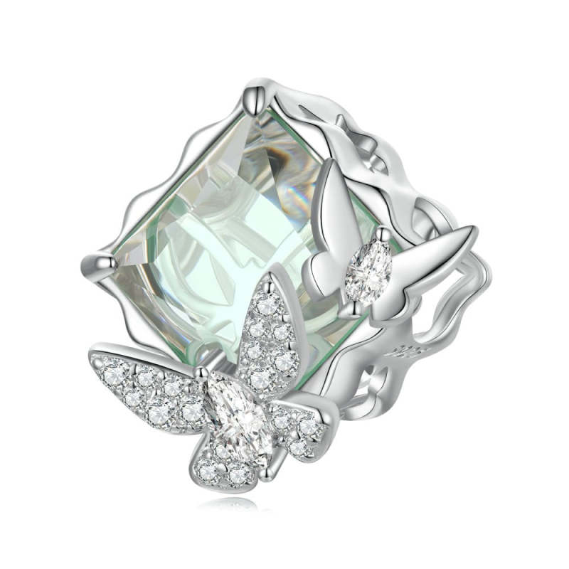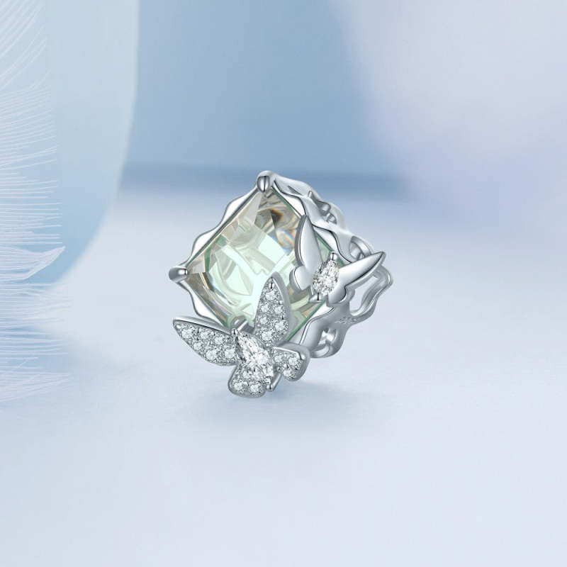 Wizard Of Oz butterfly Light Green Zircon Charm Silver