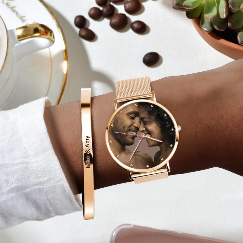Women's Engraved Alloy Bracelet Valentine's Day Gift for Her Custom Photo Watch 36mm