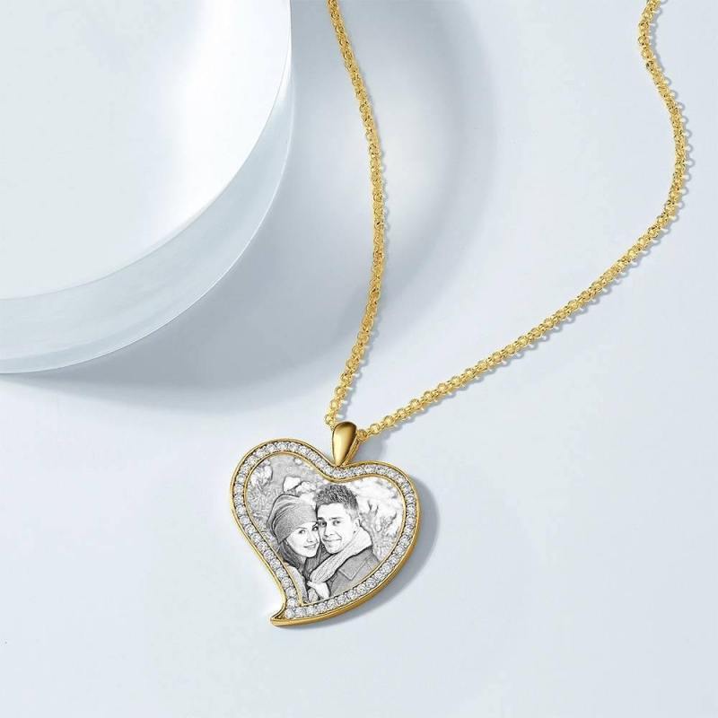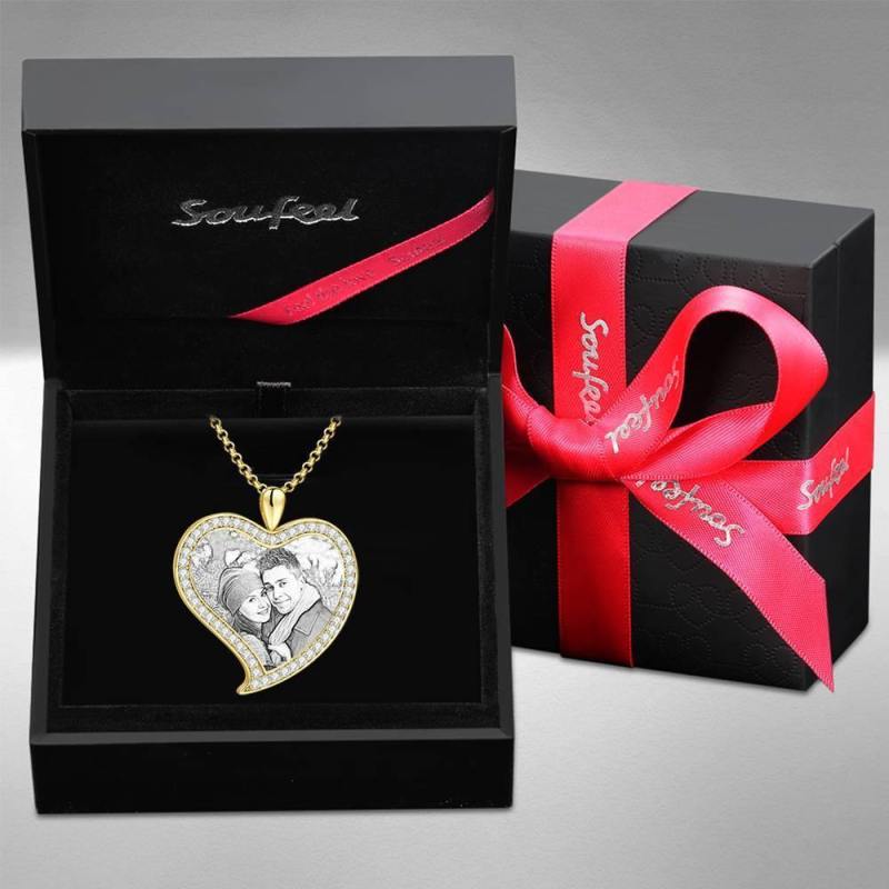 Personalized Soufeel Stainless Steel Tag Photo Pendant is the perfect way to keep your greatest memories close to the soul. This custom photo necklace is made of sturdy, stainless steel that will never tarnish so you can hold it close for many years to come. The perfect thoughtful, fun, and unique gift for any occasion! Soufeel has a ton of customized jewelry options that are reasonably priced and make for great gifts for all sorts of occasions like birthdays, holidays, anniversaries, Father's Day. Women's Personalized Photo Engraved Necklace, Rhinestone Crystal Love Heart Shape Photo Necklace 14K Gold Plated Golden - Sketch.