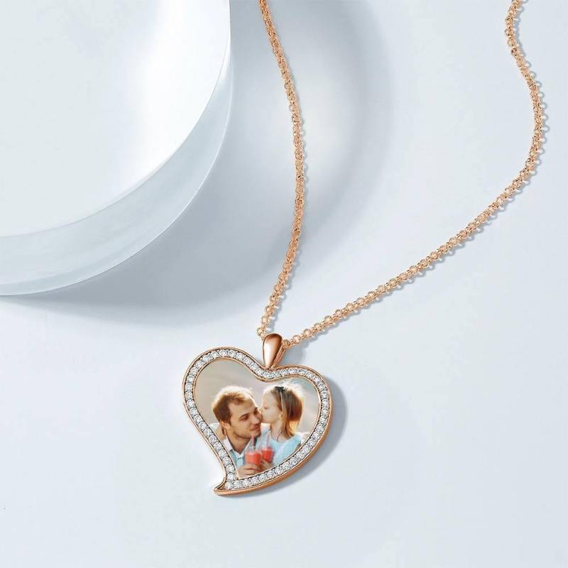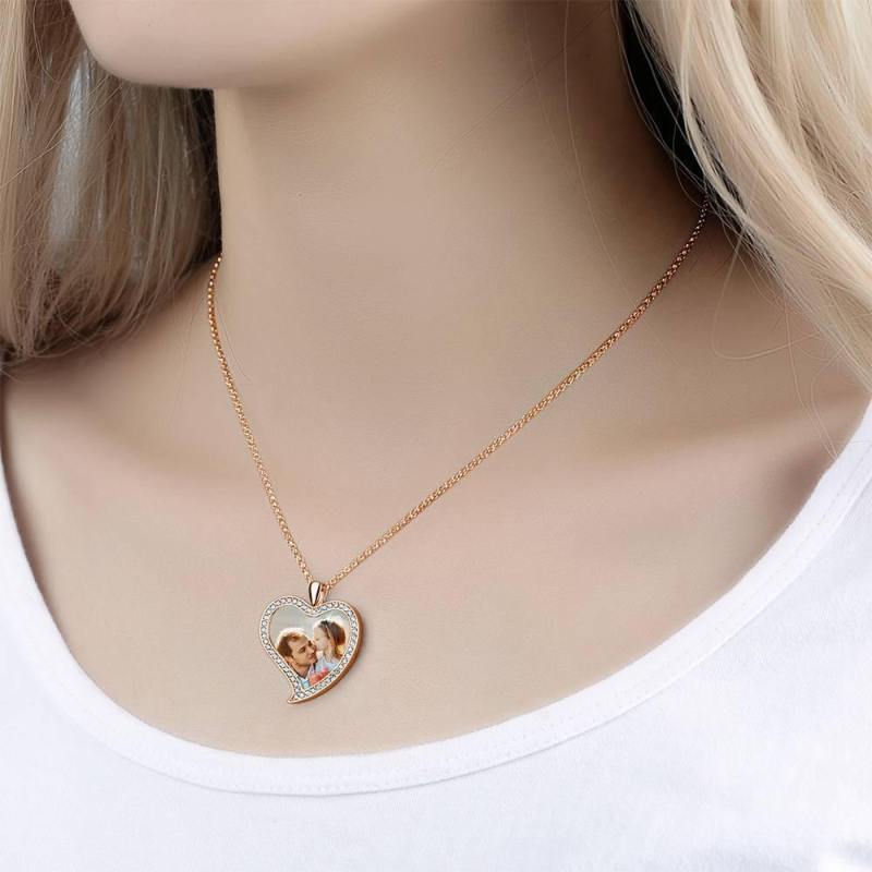 Personalized Soufeel Stainless Steel Tag Photo Pendant is the perfect way to keep your greatest memories close to the soul. This custom photo necklace is made of sturdy, stainless steel that will never tarnish so you can hold it close for many years to come. The perfect thoughtful, fun, and unique gift for any occasion! Soufeel has a ton of customized jewelry options that are reasonably priced and make for great gifts for all sorts of occasions like birthdays, holidays, anniversaries, Father's Day. Women's Personalized Photo Engraved Necklace, Rhinestone Crystal Love Heart Shape Photo Necklace Rose Gold Plated - Colorful.