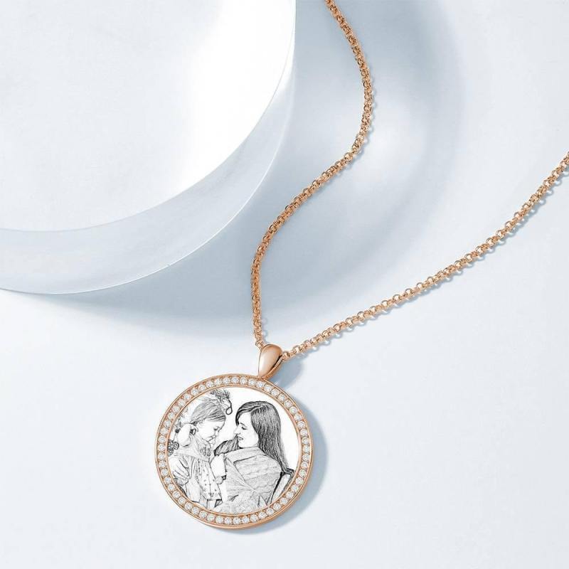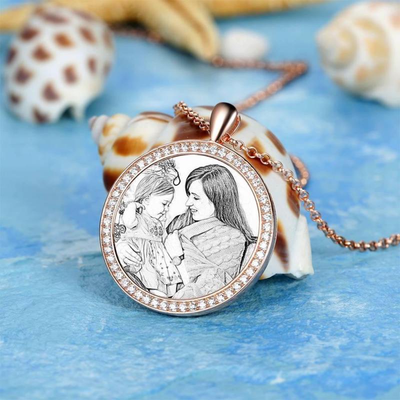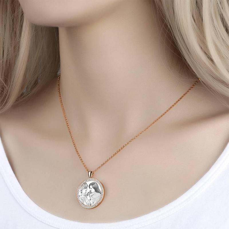 Personalized Soufeel Stainless Steel Tag Photo Pendant is the perfect way to keep your greatest memories close to the soul. This custom photo necklace is made of sturdy, stainless steel that will never tarnish so you can hold it close for many years to come. The perfect thoughtful, fun, and unique gift for any occasion! Soufeel has a ton of customized jewelry options that are reasonably priced and make for great gifts for all sorts of occasions like birthdays, holidays, anniversaries, Father's Day. Women's Personalized Photo Engraved Necklace, Rhinestone Crystal Round Shape Photo Necklace Rose Gold Plated - Sketch.
