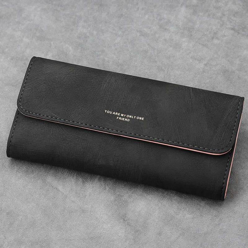 Women's Trifold Photo Wallet - Black Leather